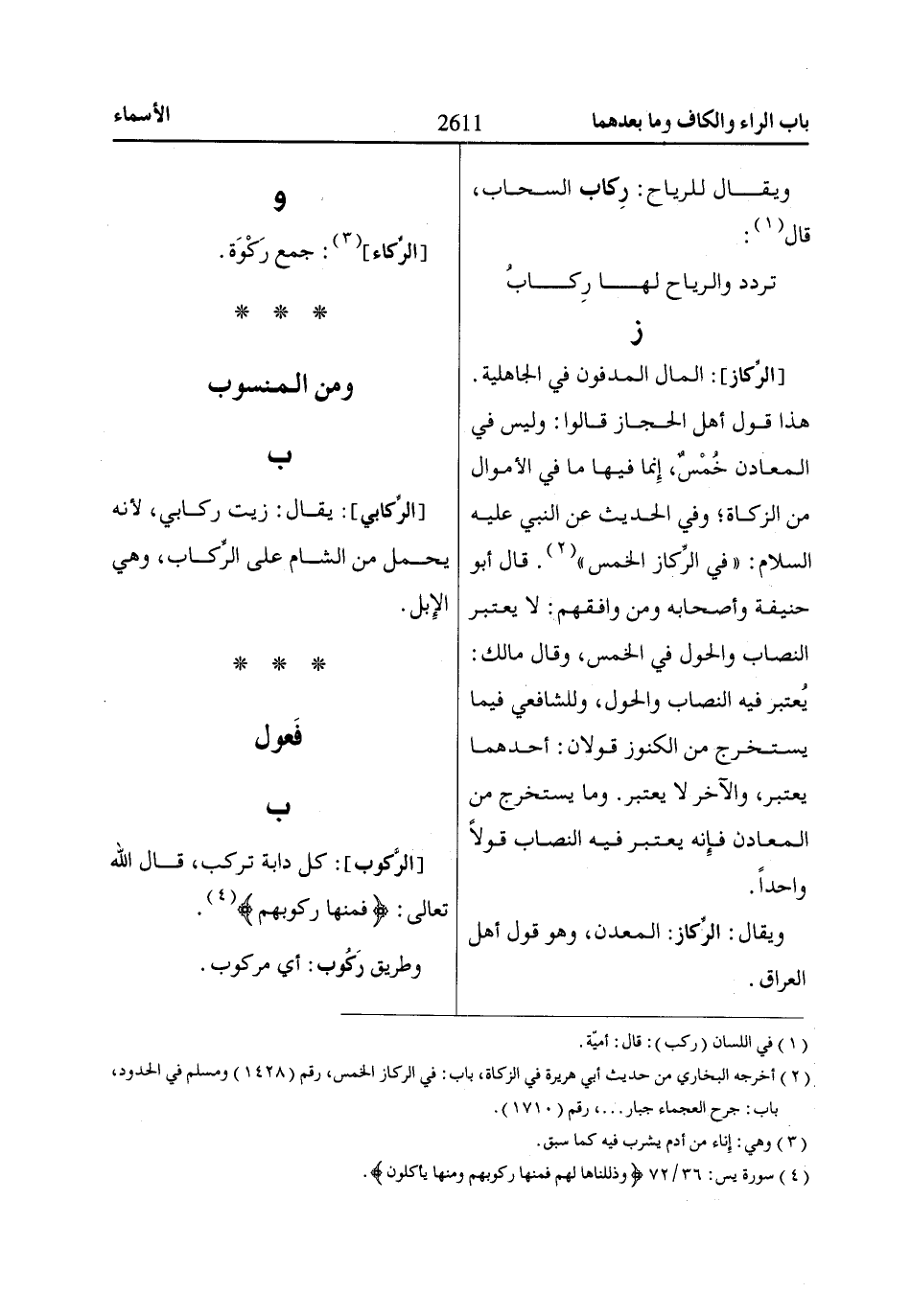 (4) سورة يس: 36/ 72 وَذَلَّلْنااهاا لَهُمْ فَمِنْهاا رَكُوبُهُمْ وَمِنْهاا يَأْكُلُونَ.