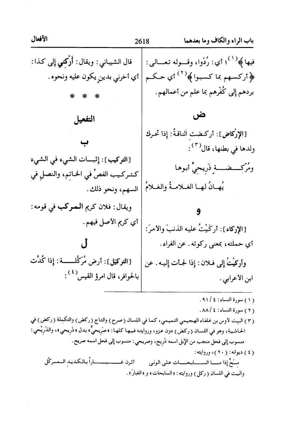 أَرْكَسَهُمْ بِماا كَسَبُوا «2» أي حكم بردهم إِلى كُفْرهم بما علم من أعمالهم.