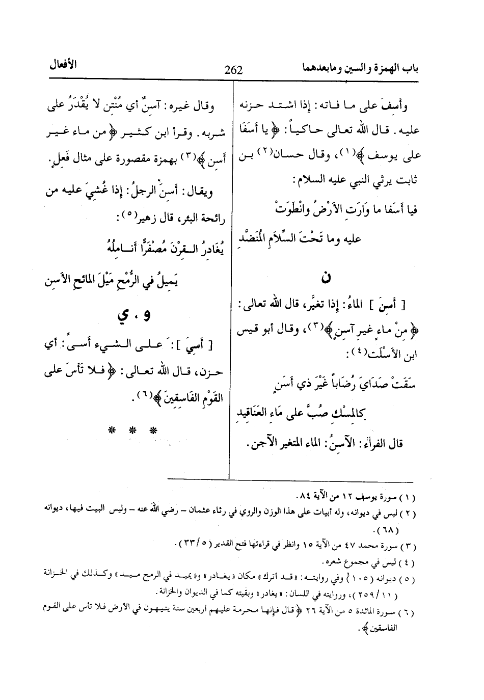 مِنْ مااءٍ غَيْرِ آسِنٍ «3»، وقال أبو قيس ابن الأَسْلَت «4»: