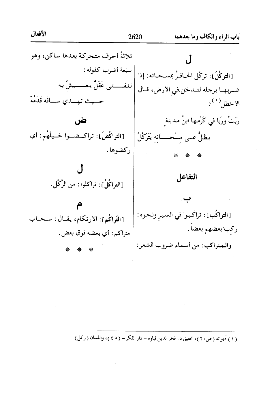 (1) ديوانه (ص 20)، تحقيق د. فخر الدين قباوة- دار الفكر- (ط 4)، واللسان (ركل).