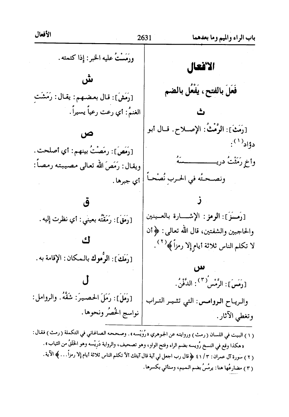 (3) مضارعُها هنا: يرمُسُ بضم الميم، وستأتي بكسرها.