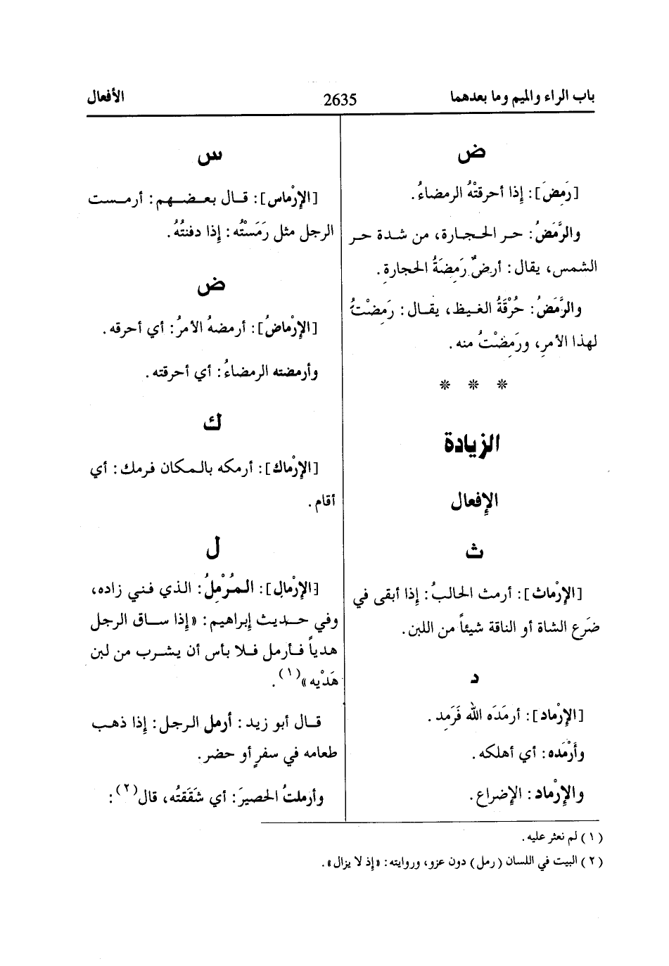 [الإِرْماضُ]: أرمضهُ الأمرُ: أي أحرقه.