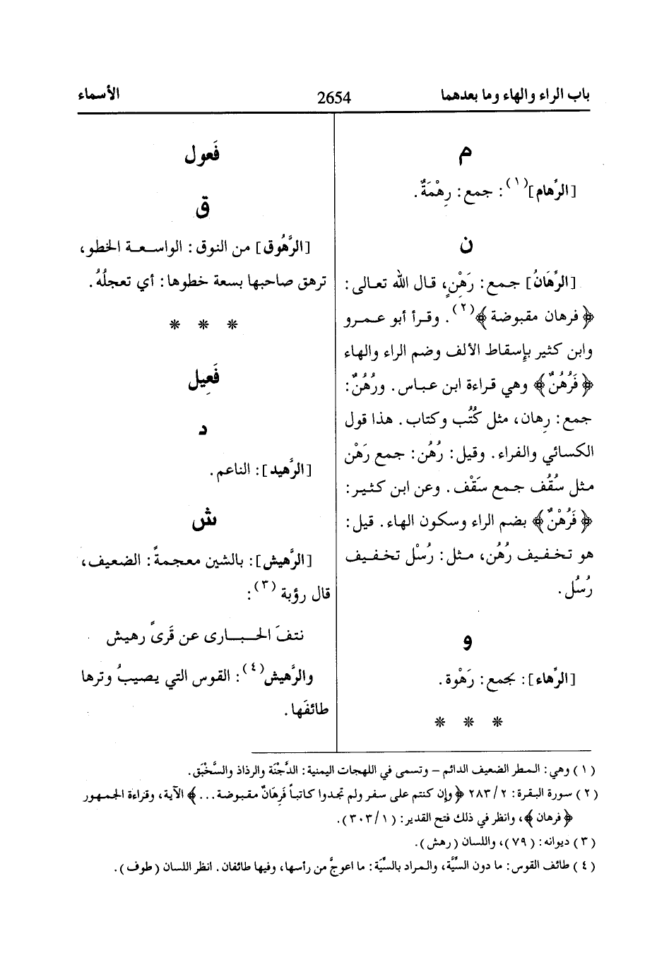(2) سورة البقرة: 2/ 283 وَإِنْ كُنْتُمْ عَلى سَفَرٍ وَلَمْ تَجِدُوا كااتِباً فَرِهاانٌ مَقْبُوضَةٌ .. الآية، وقراءة الجمهور فَرِهاانٌ، وانظر في ذلك فتح القدير: (1/ 303).