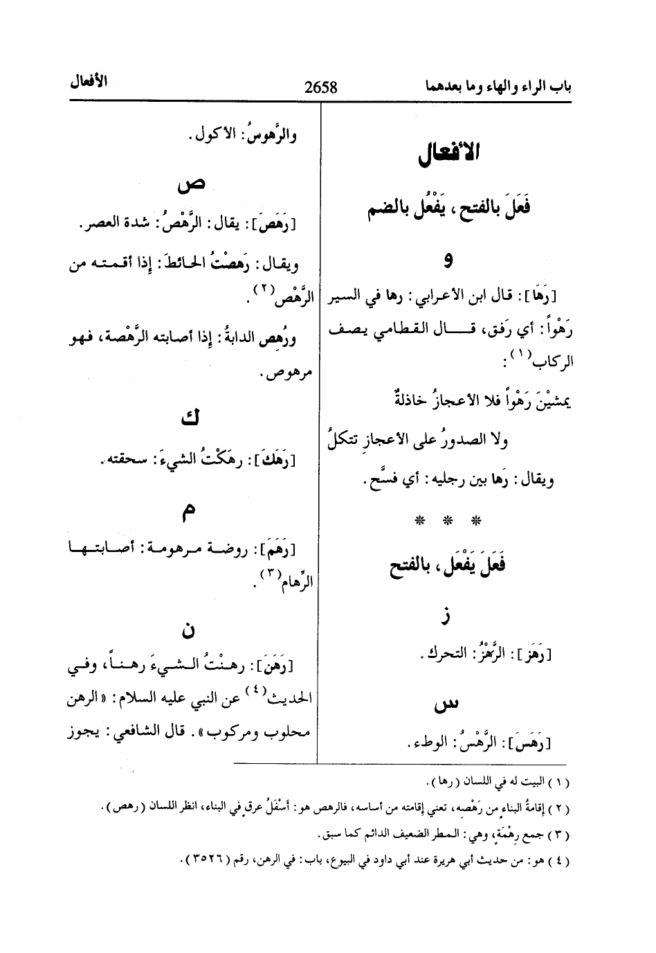 و [رَهَا]: قال ابن الأعرابي: رها في السير رَهْواً: أي رَفق، قال القطامي يصف الركاب «1»:
