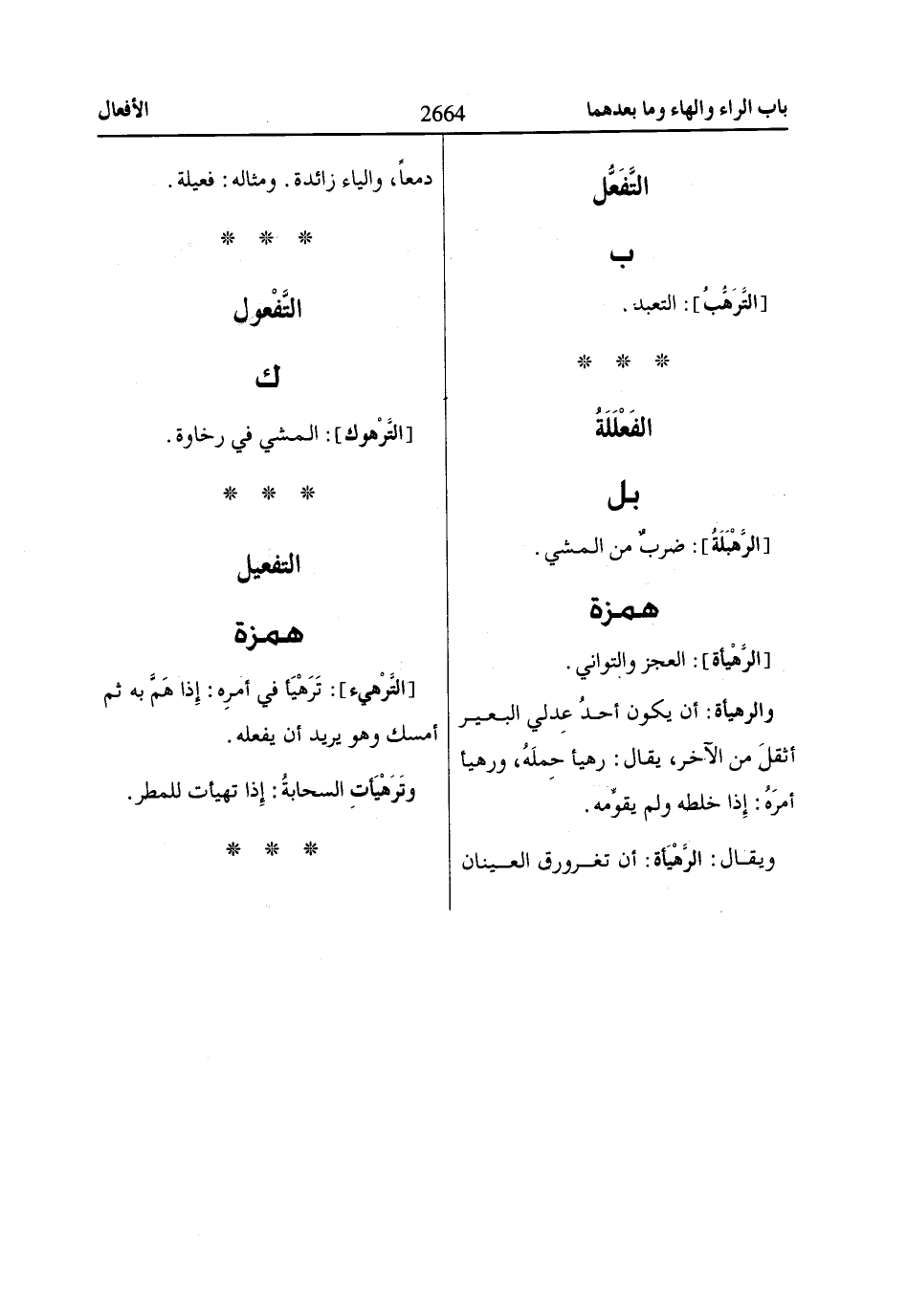 [التَّرْهيء]: تَرَهْيَأ في أمرِه: إِذا هَمَّ به ثم أمسك وهو يريد أن يفعله.