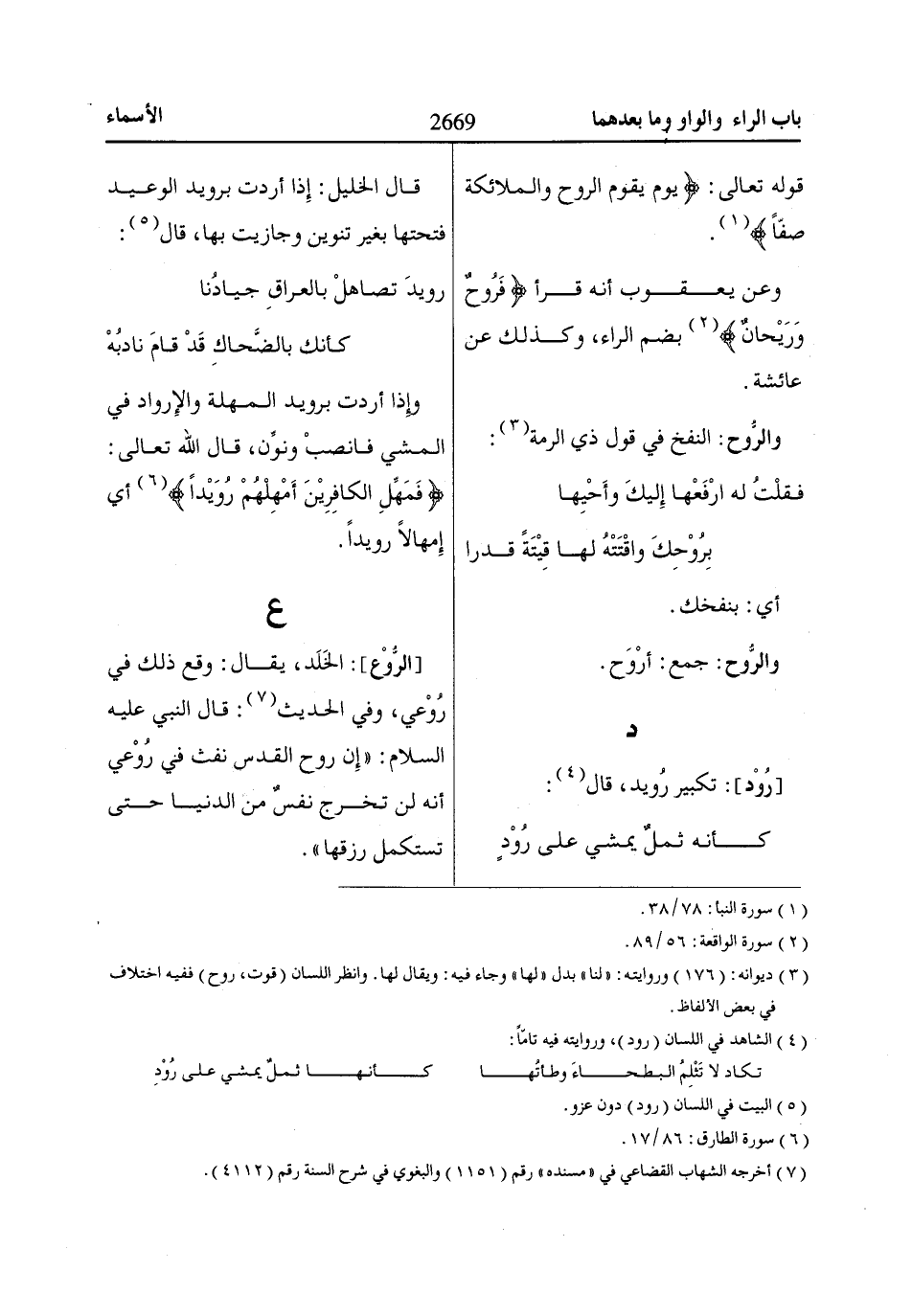 (4) الشاهد في اللسان (رود)، وروايته فيه تامّاً: