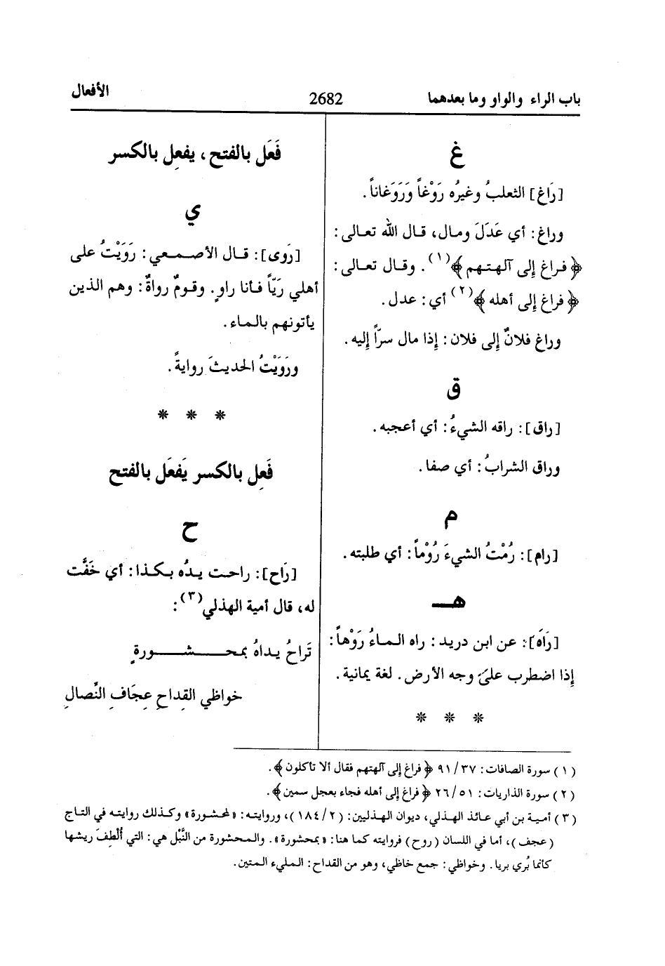 فَرااغَ إِلى آلِهَتِهِمْ «1». وقال تعالى: