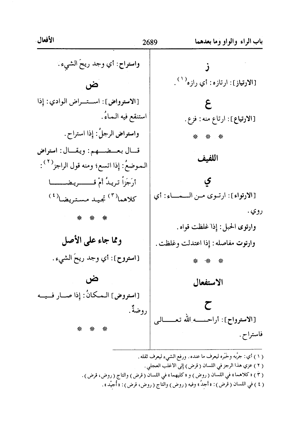 قال بعضهم: ويقال: استراض الموضعُ: إِذا اتسع؛ ومنه قول الراجز «2»: