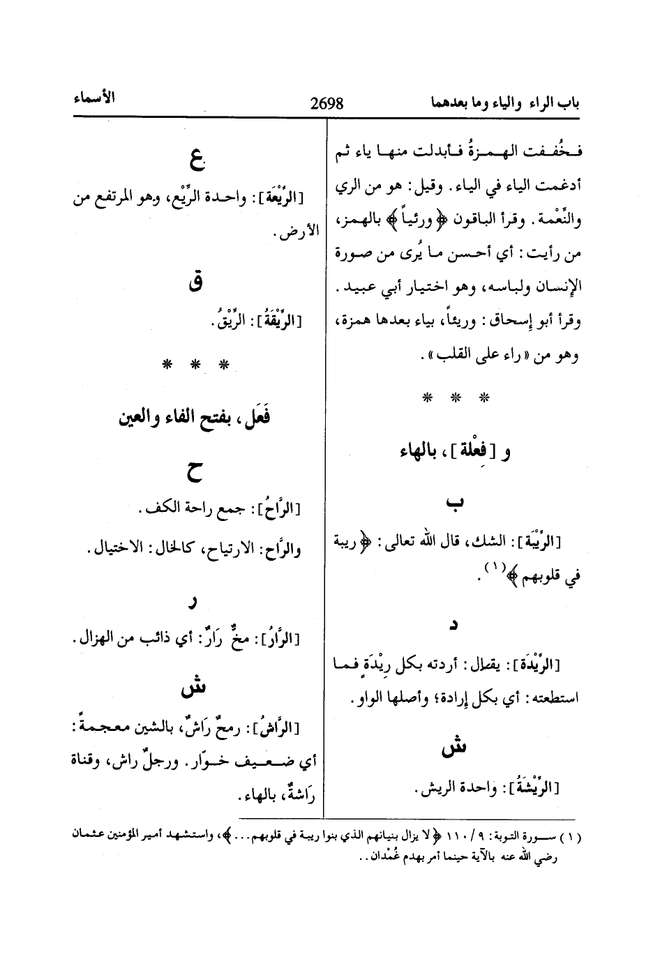 [الرِّيْبَة]: الشك، قال الله تعالى: رِيبَةً فِي قُلُوبِهِمْ «1».