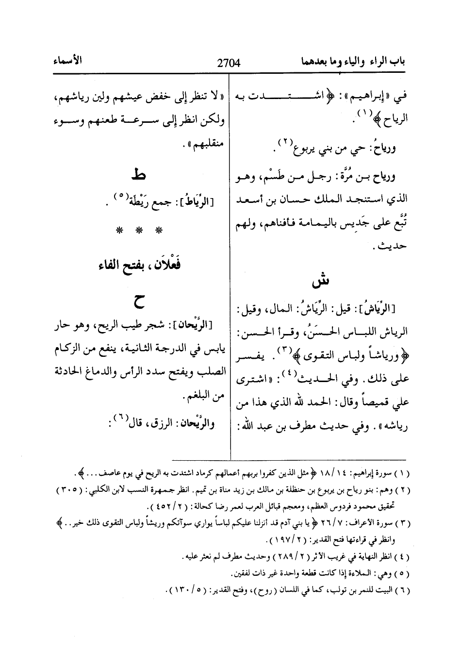 [الرَّيْحان]: شجر طيب الريح، وهو حار يابس في الدرجة الثانية، ينفع من الزكام الصلب ويفتح سدد الرأس والدماغ الحادثة من البلغم.