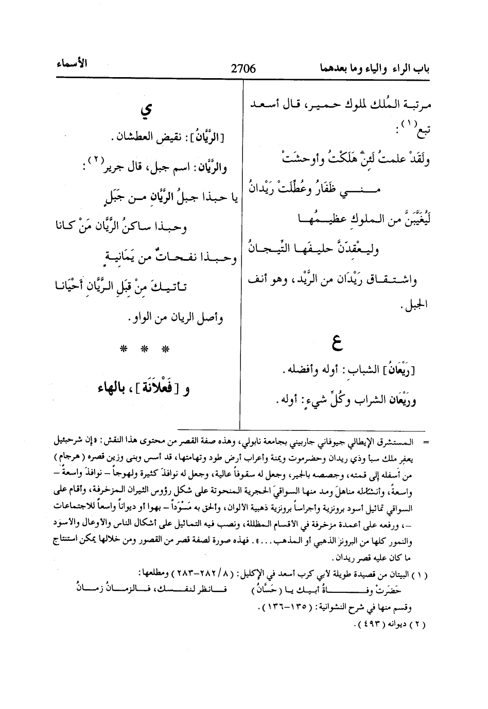 والرَّيَّان: اسم جبل، قال جرير «2»: