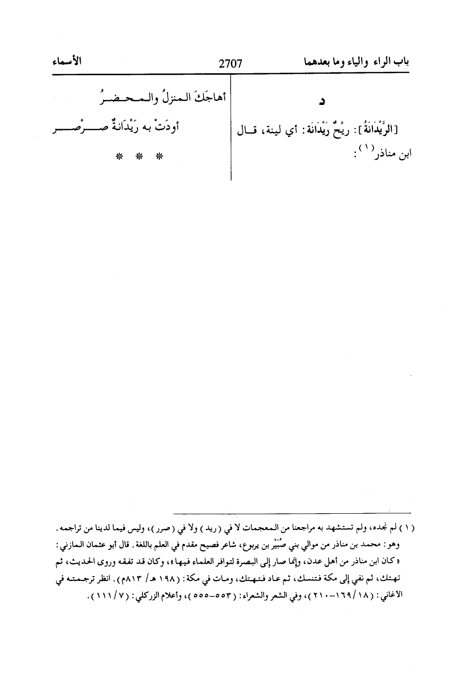 (1) لم نجده، ولم تستشهد به مراجعنا من المعجمات لا في (ريد) ولا في (صرر)، وليس فيما لدينا من تراجمه.