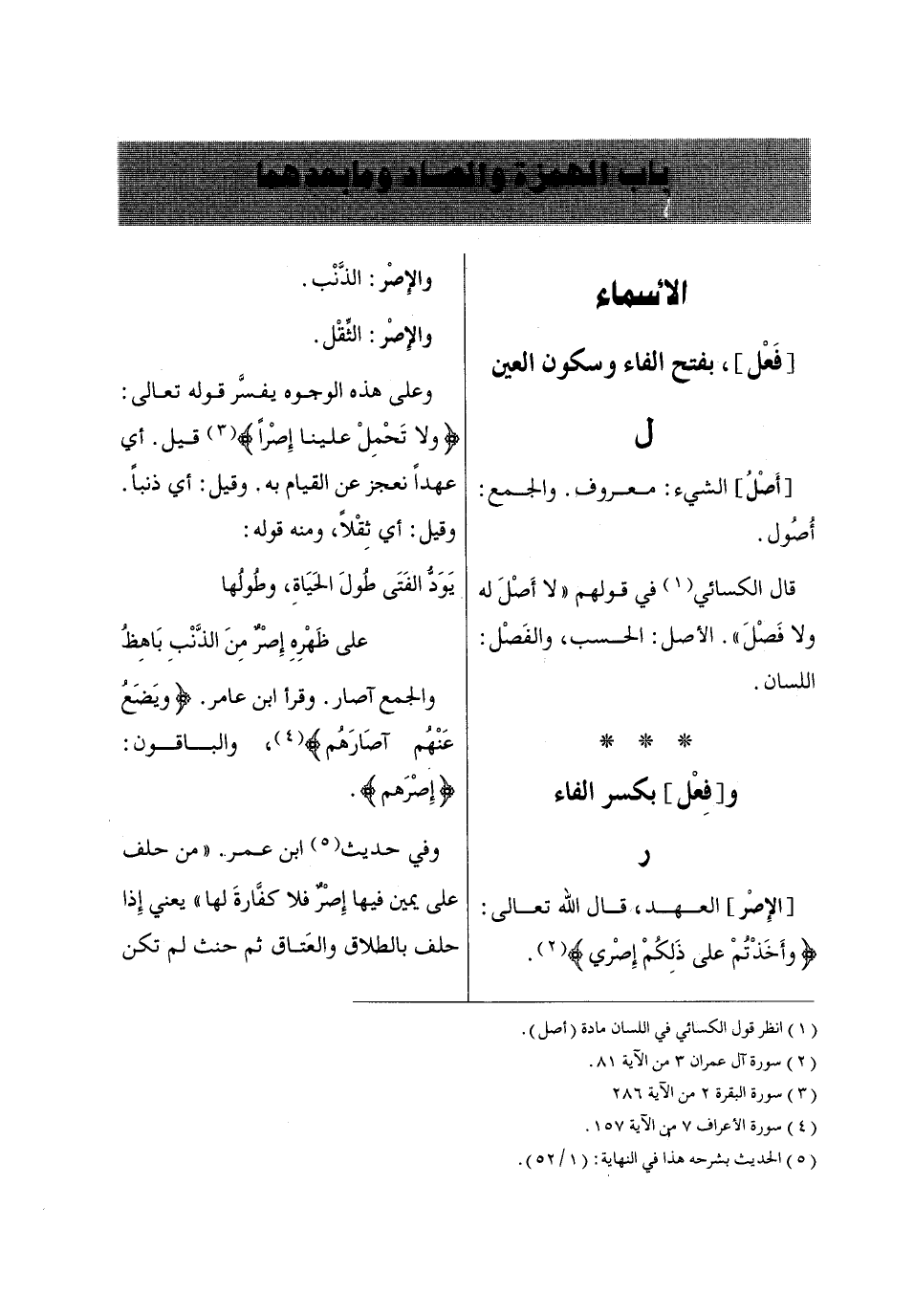 (1) انظر قول الكسائي في اللسان مادة (أصل).