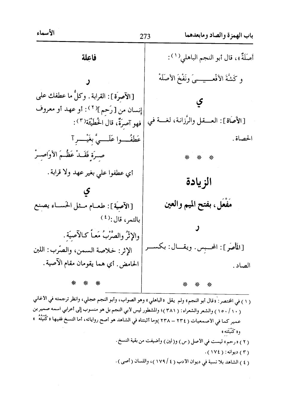 (4) الشاهد بلا نسبة في ديوان الأدب (4/ 179)، واللسان (أصى).