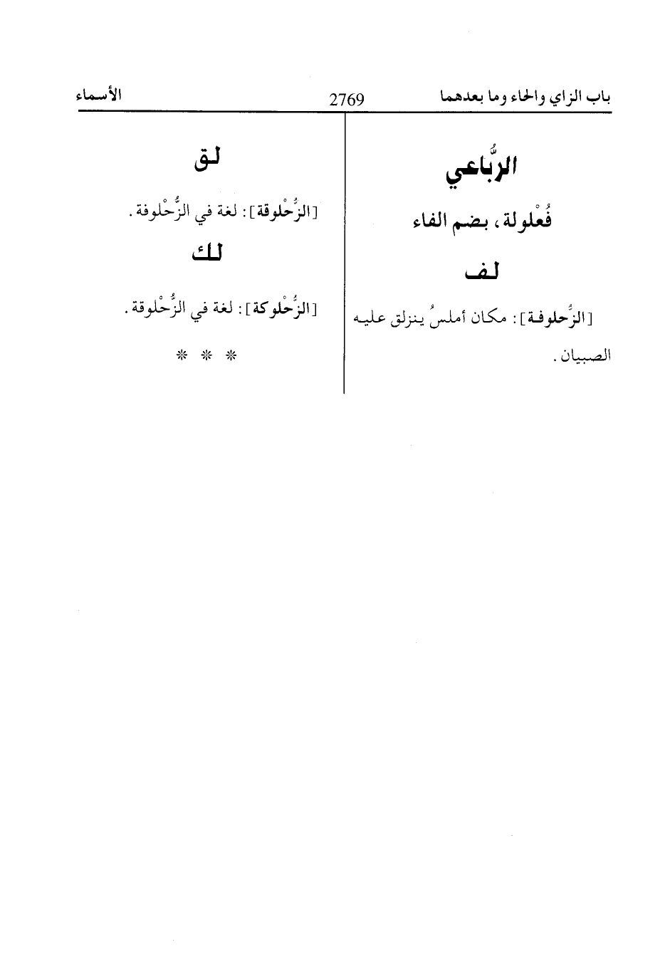 [الزُّحْلوقة]: لغة في الزُّحْلوفة.