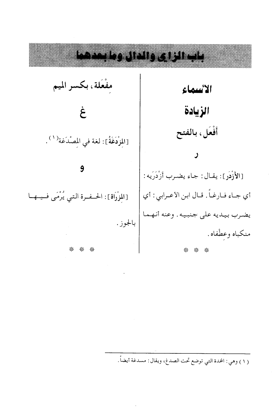 و [المِزْرَاة]: الحفرة التي يُرْمَى فيها بالجوز.