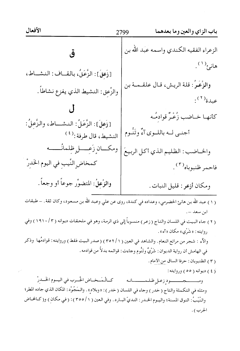 (2) جاء البيت في اللسان والتاج (زعر) منسوباً إِلى ذي الرمة، وهو في ملحقات ديوانه (3/ 1910) وفي روايته: «شَرْي» مكان «آء».
