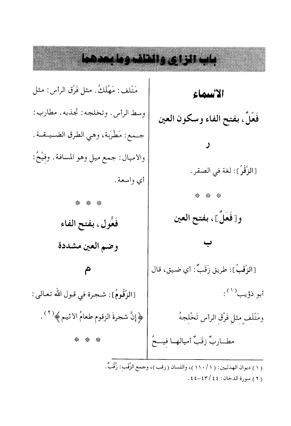 باب الزاي والقاف وما بعدهما