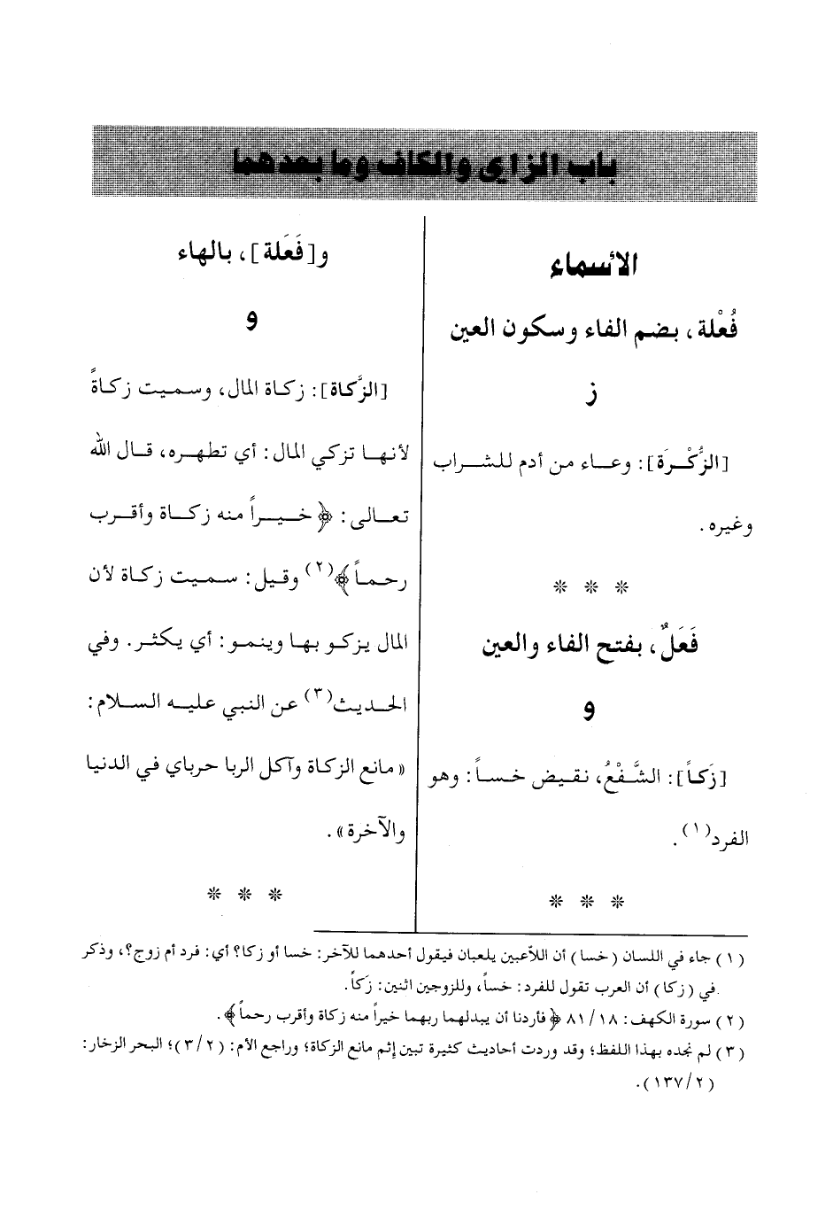باب الزاي والكاف وما بعدهما