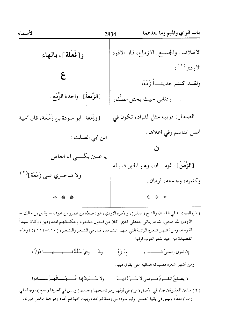 [وزَمَعة: أبو سودة بن زَمَعَة، قال أمية ابن أبي الصلت: