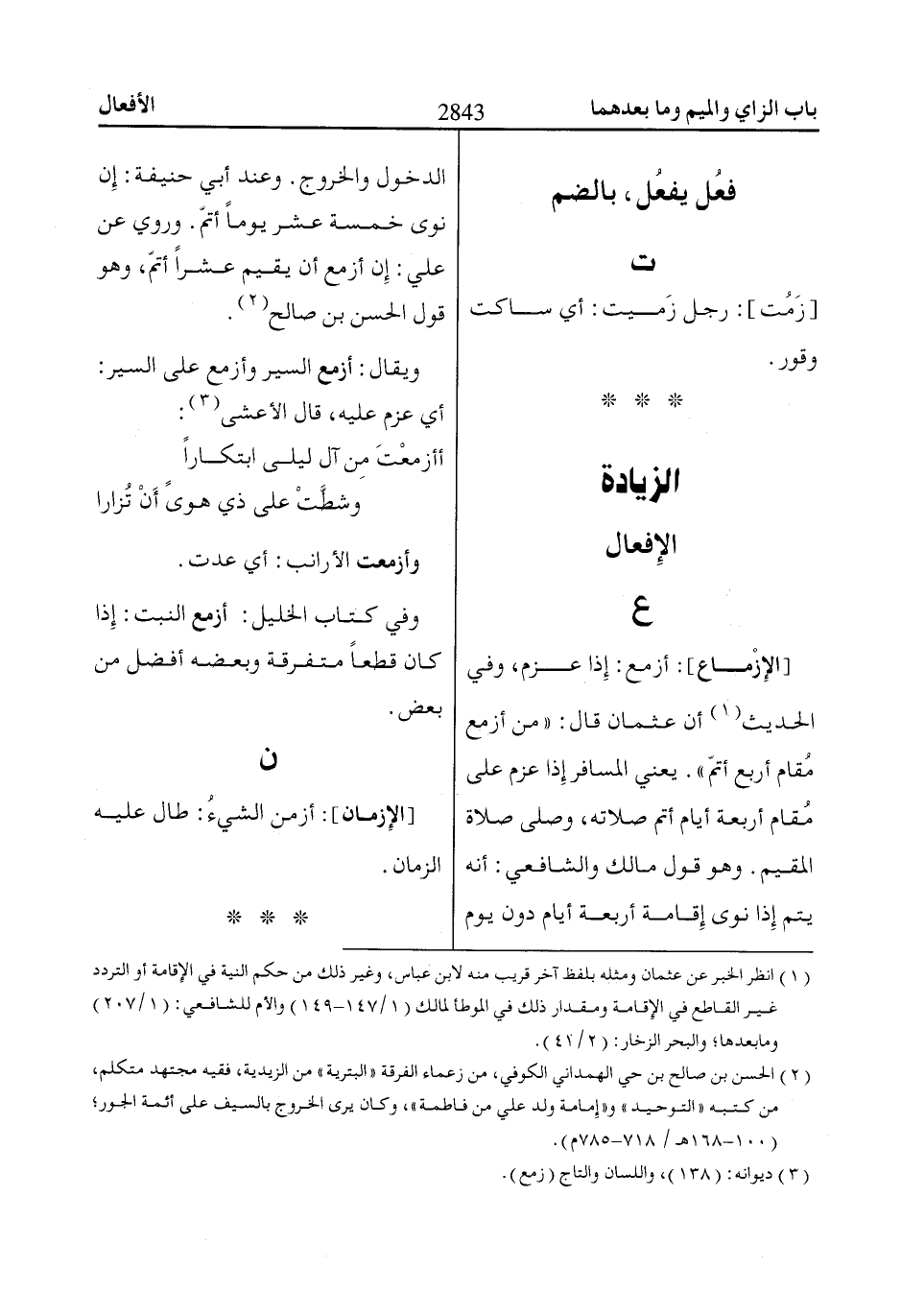 (1) انظر الخبر عن عثمان ومثله بلفظ آخر قريب منه لابن عباس، وغير ذلك من حكم النية في الإِقامة أو التردد غير القاطع في الإِقامة ومقدار ذلك في الموطأ لمالك (1/ 147 - 149) والأم للشافعي: (1/ 207) وما بعدها؛ والبحر الزخار: (2/ 41).