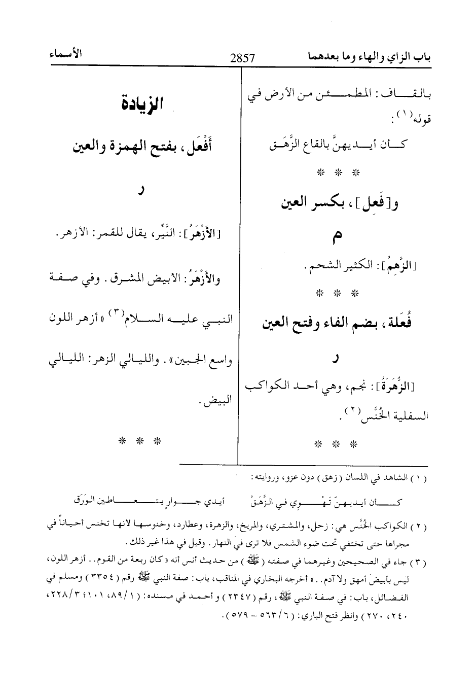 وفي صفة النبي عليه السلام «3» «أزهر اللون واسع الجبين»
