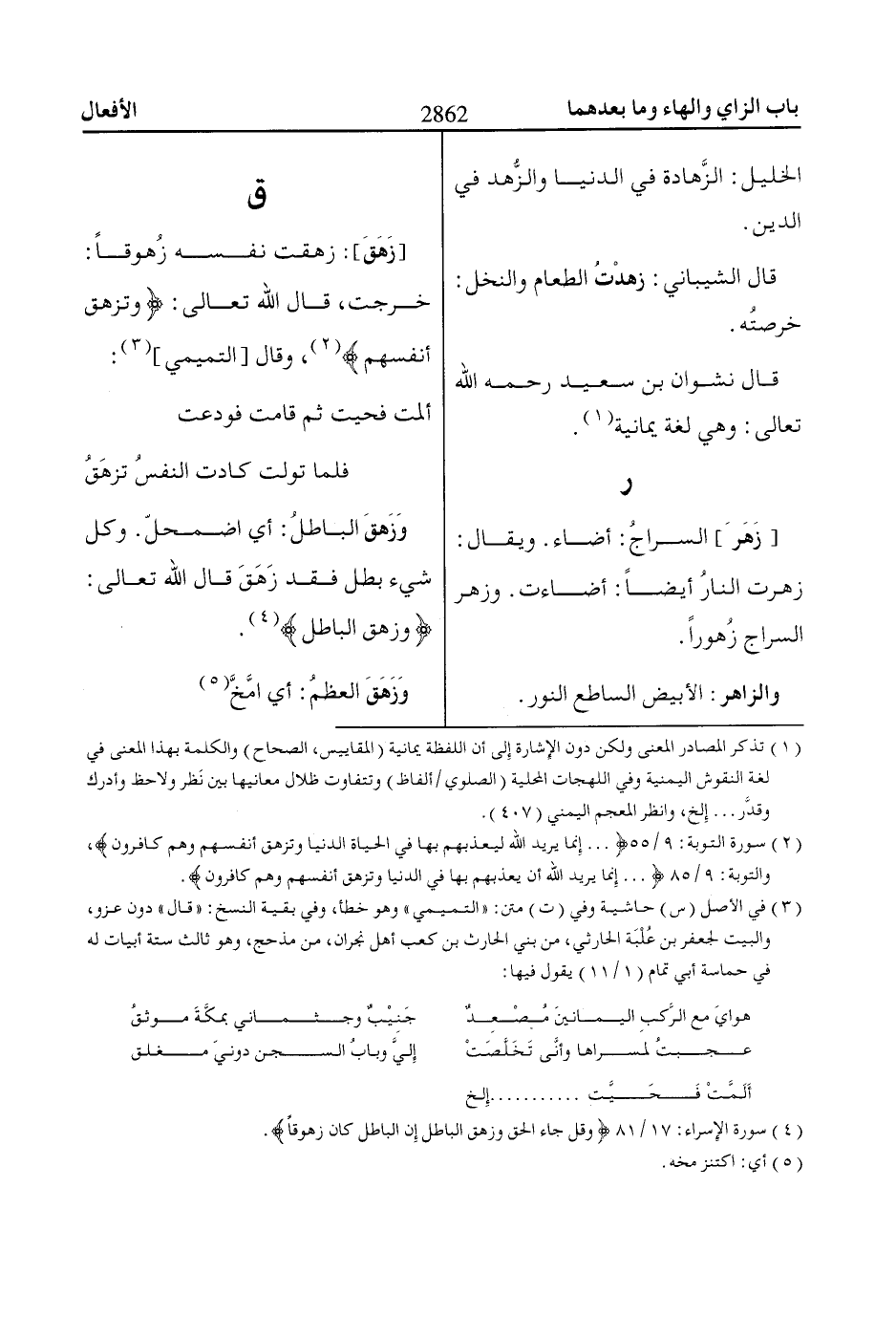 خرجت، قال الله تعالى: وَتَزْهَقَ أَنْفُسُهُمْ* «2»، وقال [التميمي] «3»:
