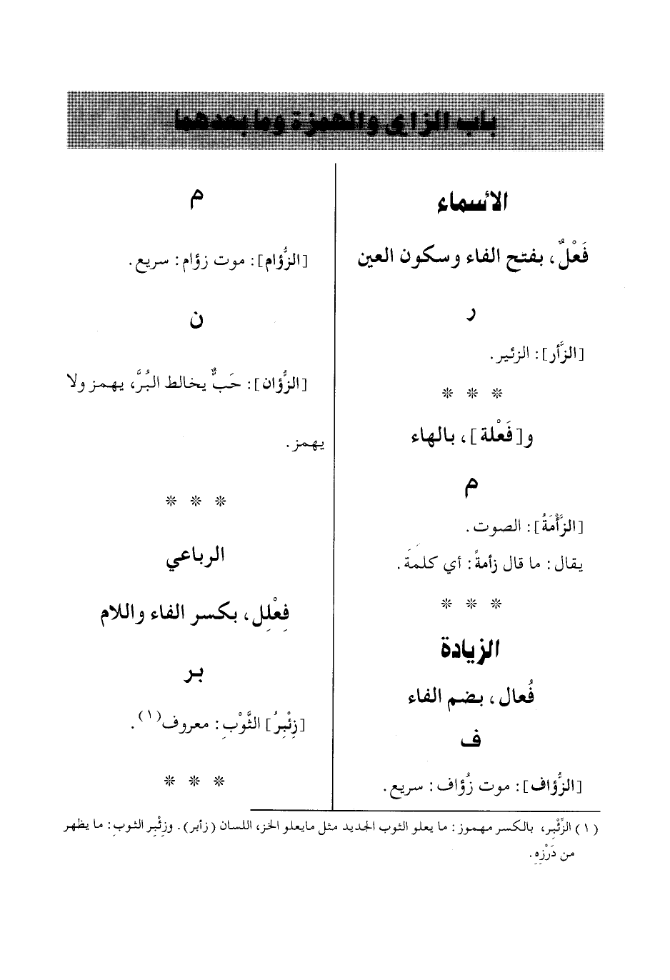 باب الزاي والهمزة وما بعدهما