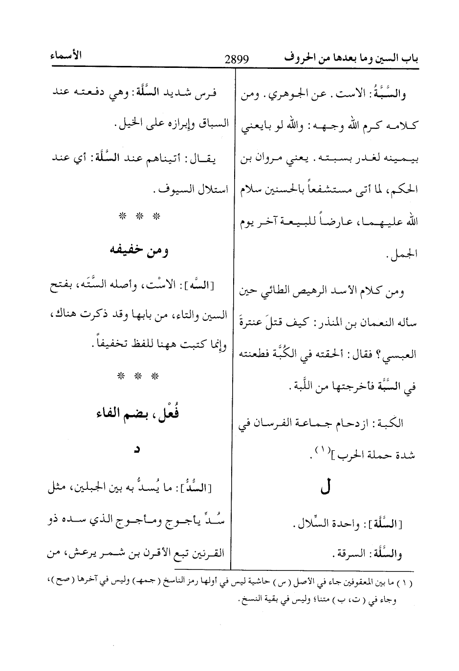 يقال: أتيناهم عند السَّلَّة: أي عند استلال السيوف.