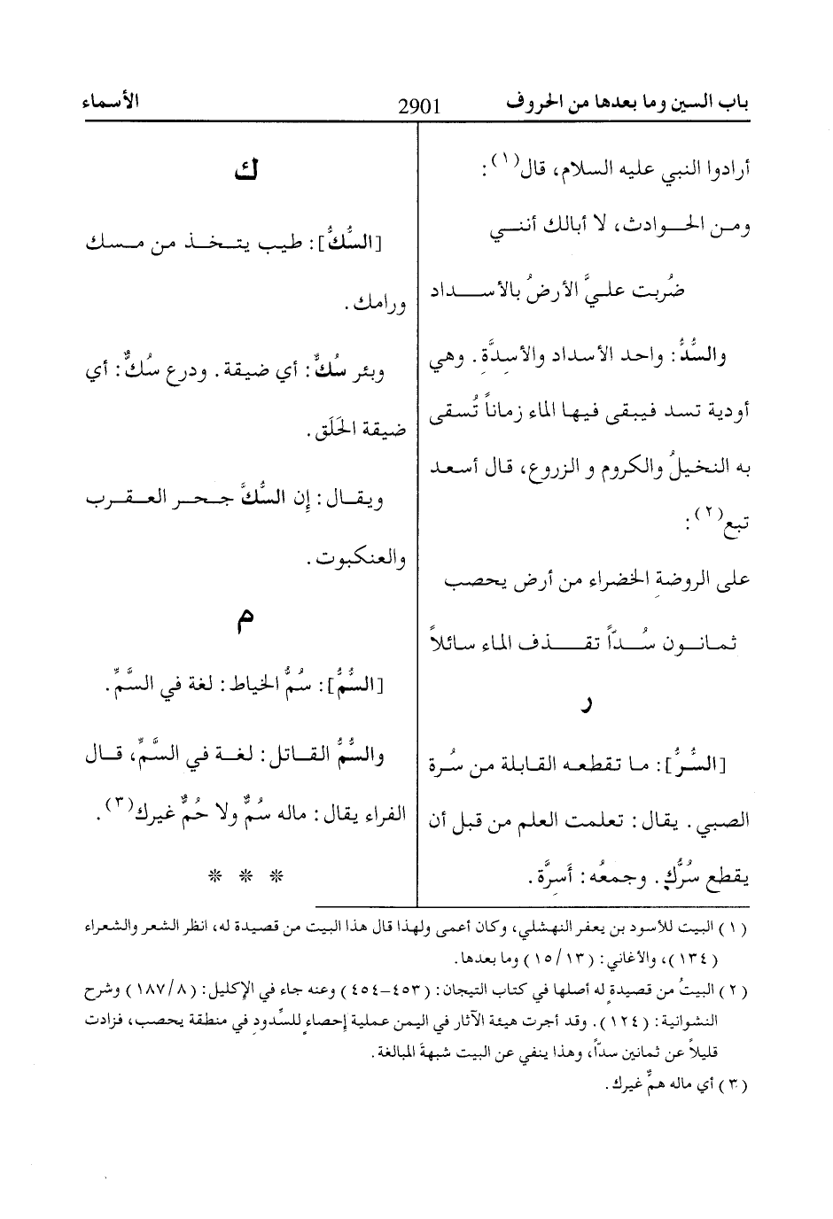 والسُّدُّ: واحد الأسداد والأسِدَّةِ. وهي أودية تسد فيبقى فيها الماء زماناً تُسقى به النخيلُ والكروم والزروع، قال أسعد تبع «2»: