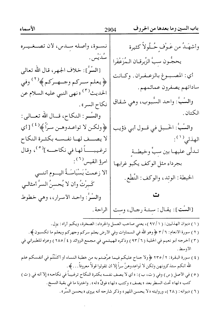 [السِّت]: يقال: سِتة رجال، وسِت نسوة، وأصله سِدس، لأن تصغيره سُدَيْس.