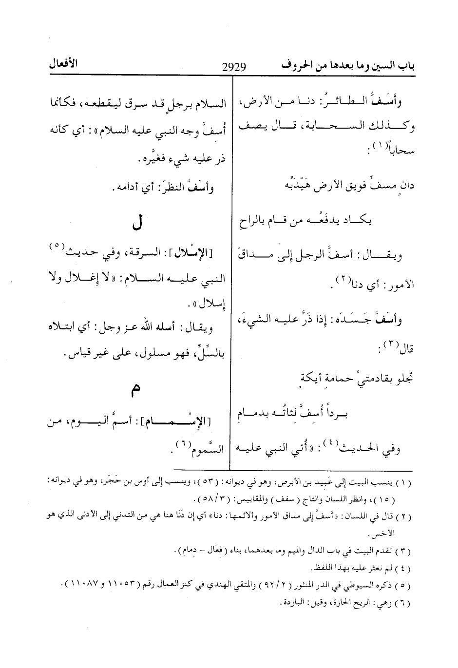 (2) قال في اللسان: «أَسفَّ إِلى مداق الأمور وألائمها: دنا» أي إِن دَنَا هنا هي من التدني إِلى الأدنى الذي هو الأخس.
