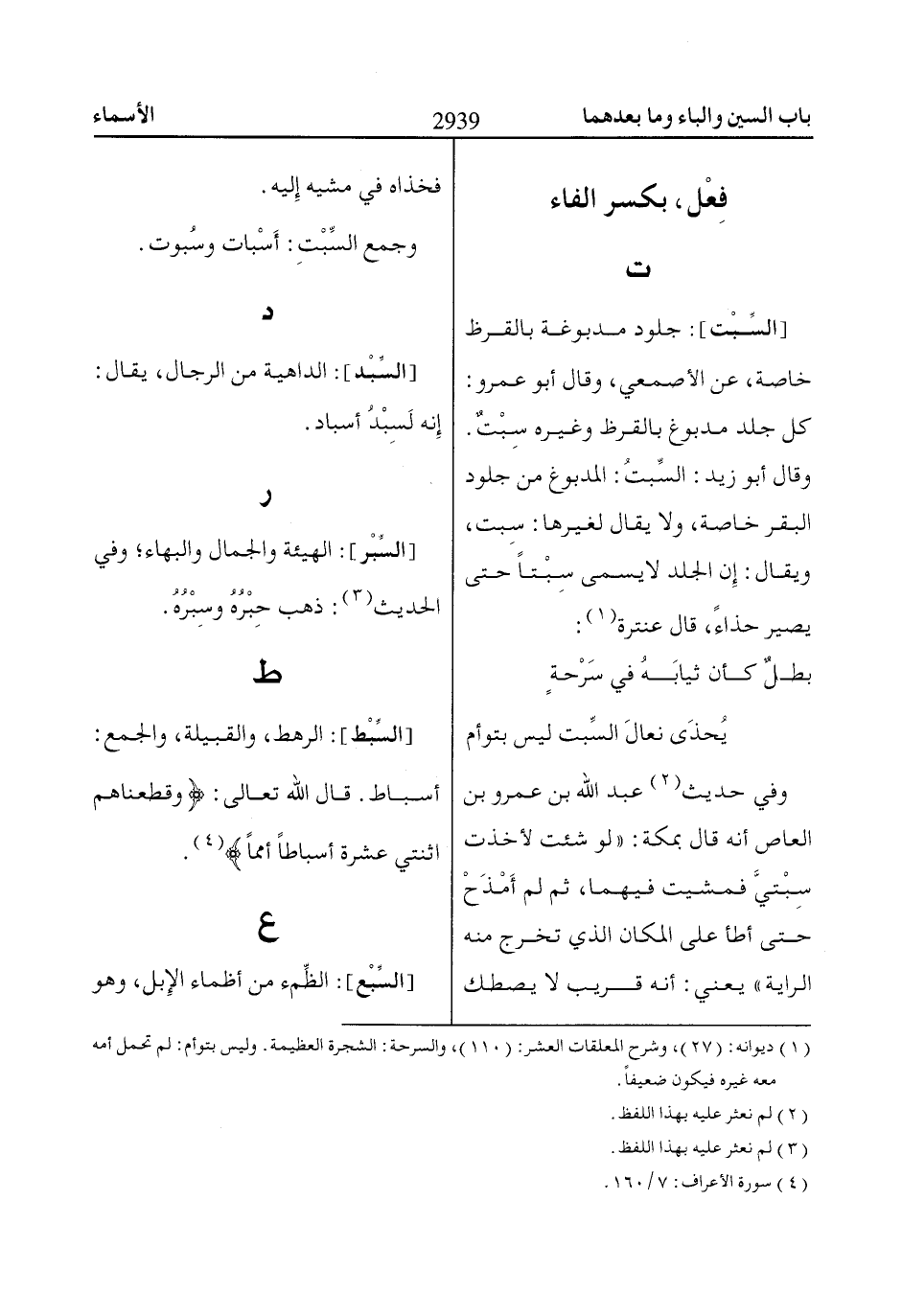 [السِّبْت]: جلود مدبوغة بالقرظ خاصة، عن الأصمعي، وقال أبو عمرو:
