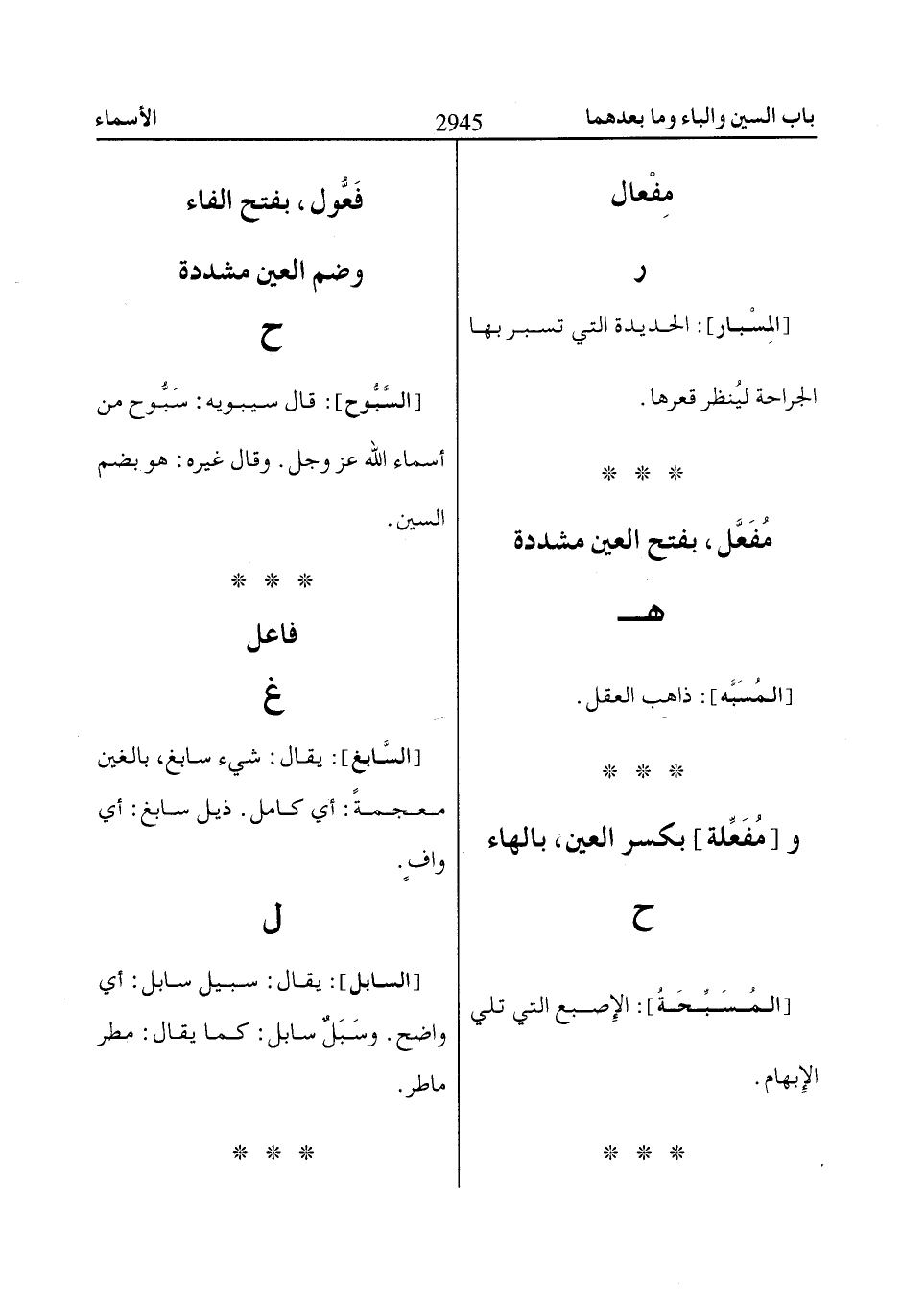 [السَّابغ]: يقال: شيء سابغ، بالغين معجمةً: أي كامل. ذيل سابغ: أي وافٍ.