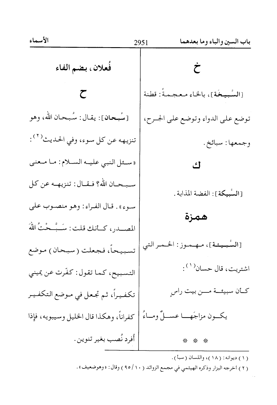 [السَّبيئة]، مهموز: الخمر التي اشتريت، قال حسان «1»: