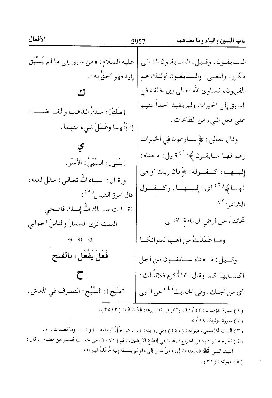 (1) سورة المؤمنون: 23/ 61، وانظر في تفسيرها، الكشاف: (3/ 35).