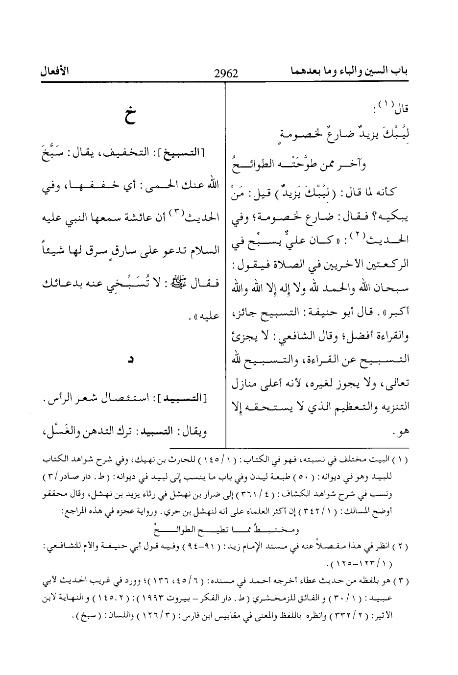 (3) هو بلفظه من حديث عطاء أخرجه أحمد في مسنده: (6/ 45، 136)؛ وورد في غريب الحديث لأبي عبيد: (1/ 30) والفائق للزمخشري (ط. دار الفكر- بيروت 1993): (2. 145) والنهاية لابن الأثير: (2/ 332) وانظره باللفظ والمعنى في مقاييس ابن فارس: (3/ 126) واللسان: (سبخ).