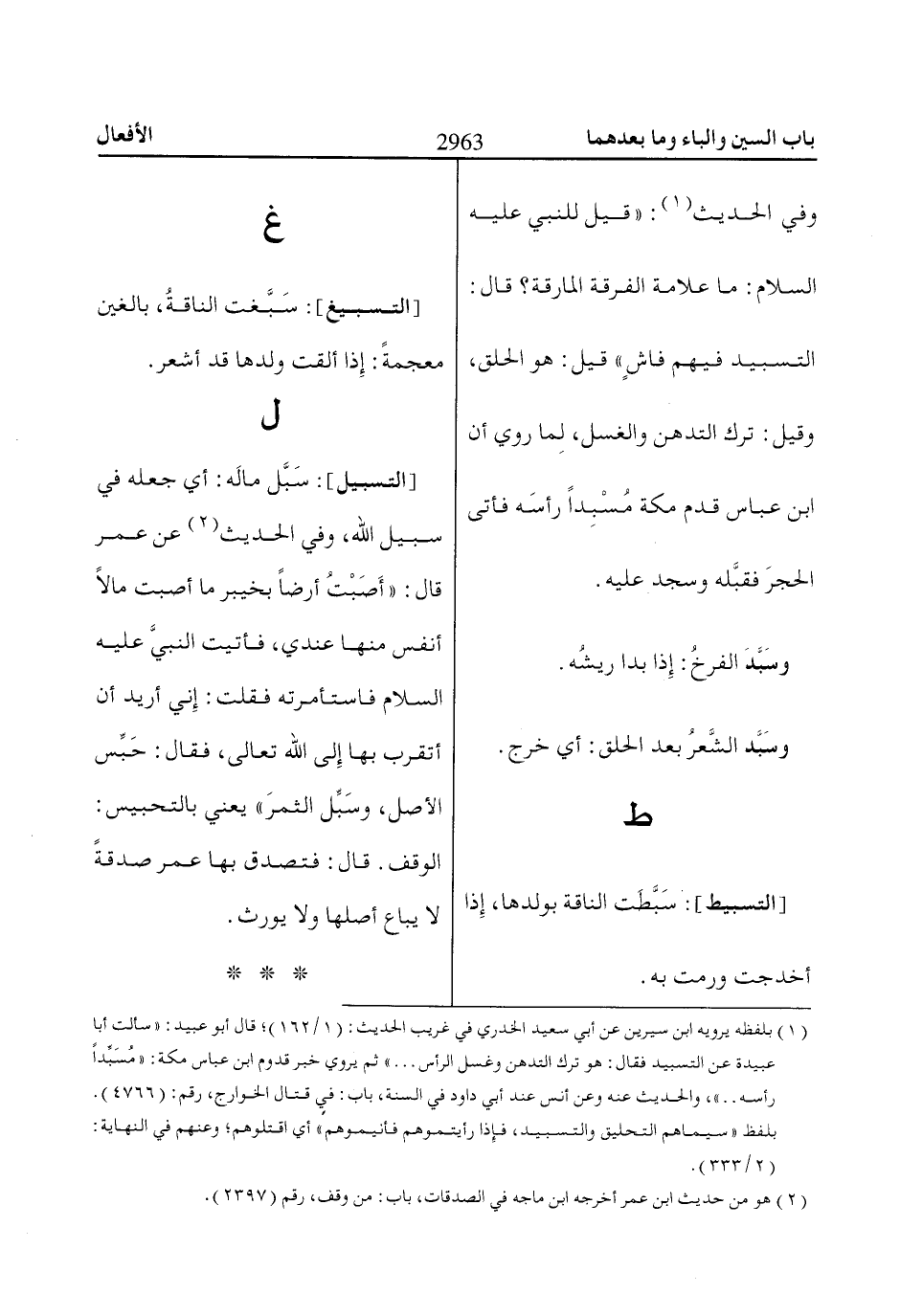 (1) بلفظه يرويه ابن سيرين عن أبي سعيد الخدري في غريب الحديث: (1/ 162)؛ قال أبو عبيد: «سألت أبا عبيدة عن التسبيد فقال: هو ترك التدهن وغسل الرأس ... » ثم يروي خبر قدوم ابن عباس مكة: «مُسَبِّداً رأسه .. »، والحديث عنه وعن أنس عند أبي داود في السنة، باب: في قتال الخوارج، رقم: (4766).