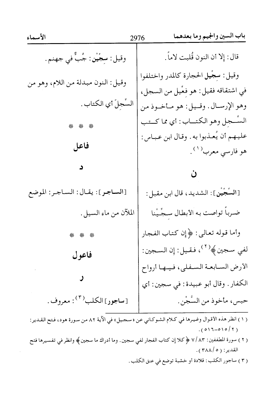 (2) سورة المطففين: 83/ 7 كَلّاا إِنَّ كِتاابَ الفُجّاارِ لَفِي سِجِّينٍ. وَماا أَدْرااكَ ماا سِجِّينٌ وانظر في تفسيرها فتح القدير: (5/ 388).