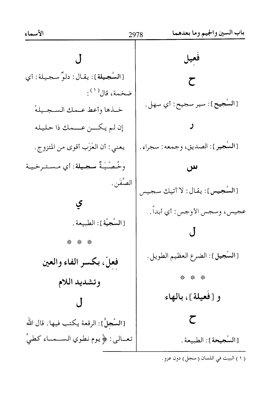 [السَّجيلة]: يقال: دلوٌ سجيلة: أي ضخمة، قال «1»: