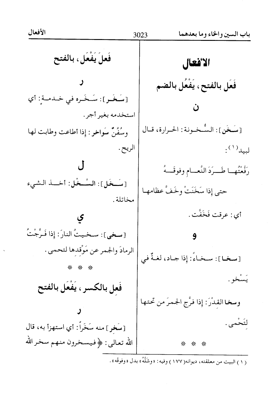 [سَخَن]: السُّخونة: الحرارة، قال لبيد «1»: