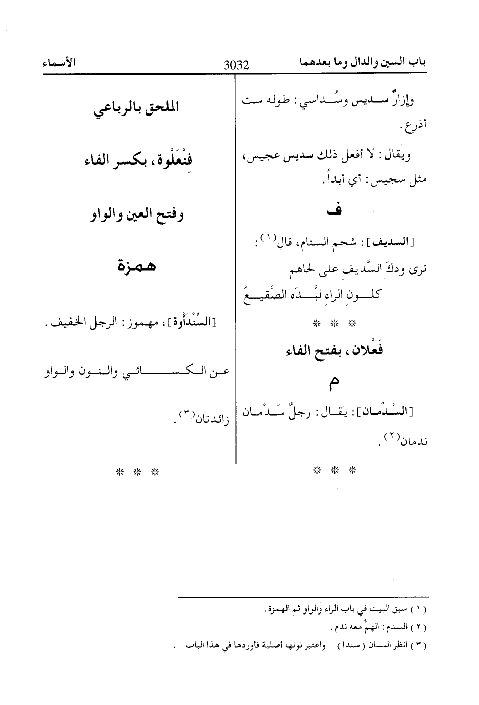 (3) انظر اللسان (سندأ) - واعتبر نونها أصلية فأوردها في هذا الباب-.