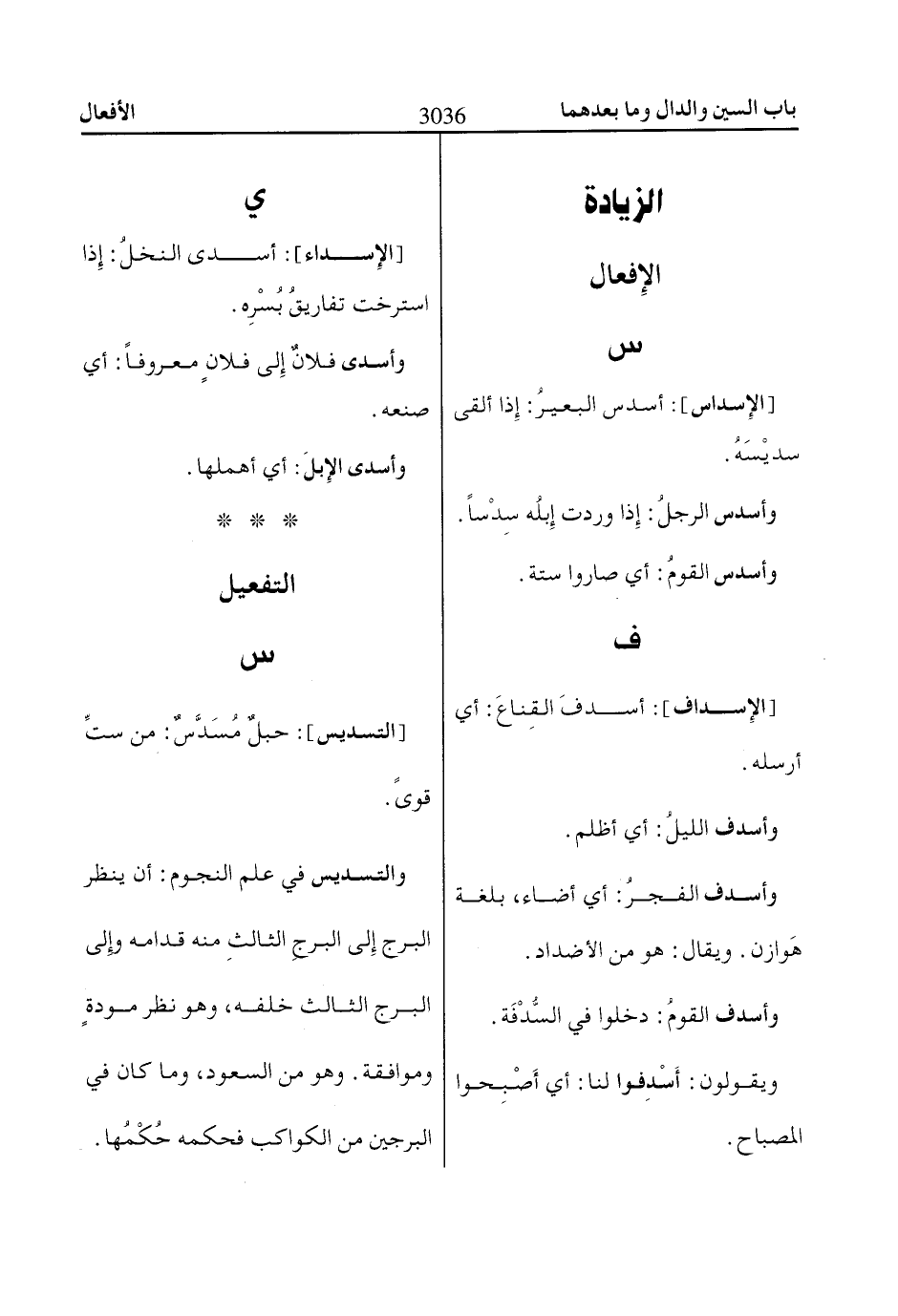 [الإِسداف]: أسدفَ القِناعَ: أي أرسله.