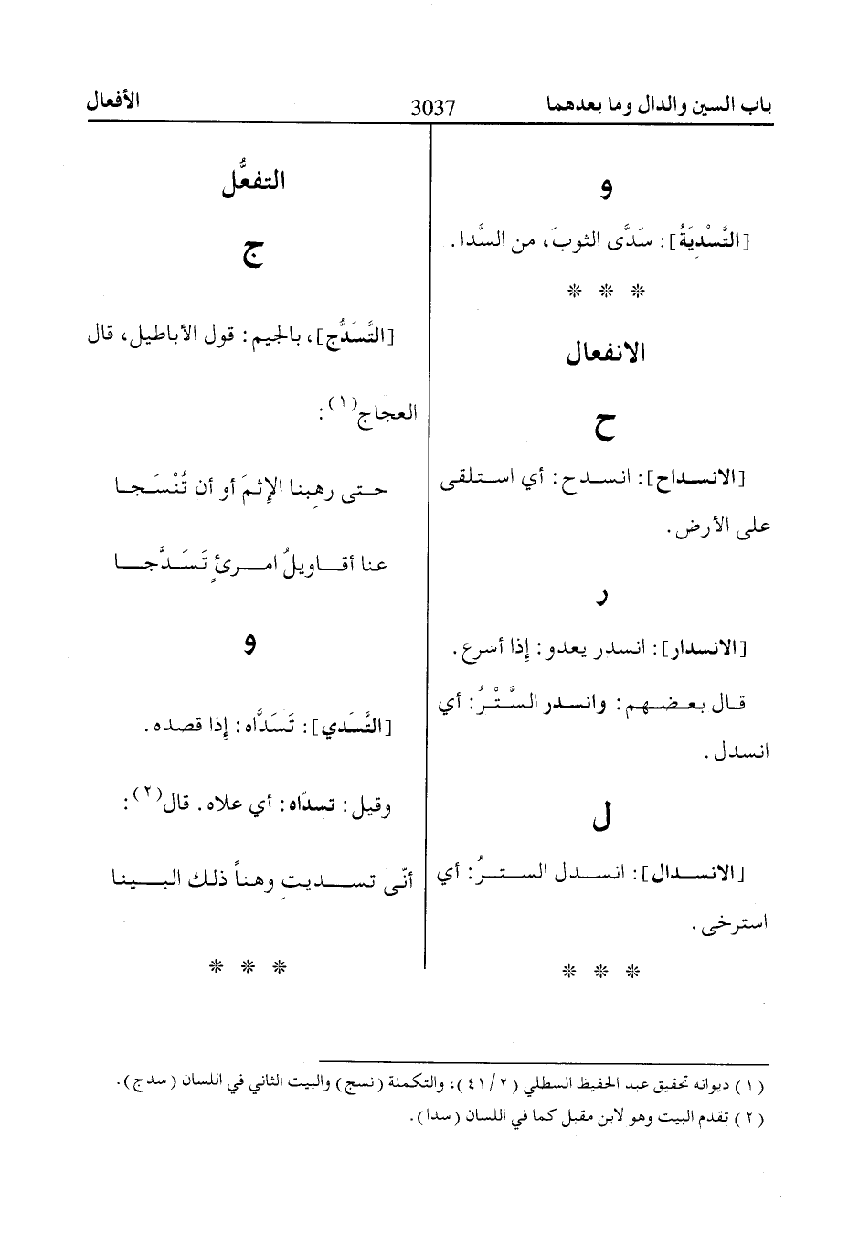 (1) ديوانه تحقيق عبد الحفيظ السطلي (2/ 41)، والتكملة (نسج) والبيت الثاني في اللسان (سدج).