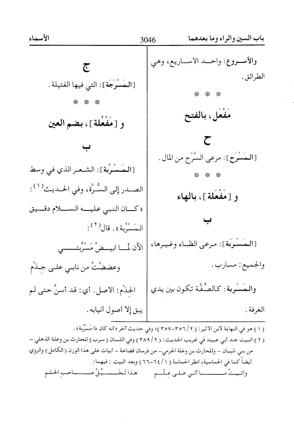 (2) البيت عند أبي عبيد في غريب الحديث: (2/ 389) وفي اللسان (سرب) للحارث بن وعلة الذهلي- من بني شيبان- وللحارث بن وعلة الجرمي- من فرسان قضاعة- أبيات على هذا الوزن (الكامل) والروي أيضاً كما في الحماسية، انظر الحماسة (1/ 64 - 66) وبعد البيت: فيهما: