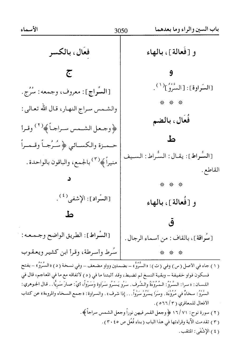 [السِّراج]: معروف، وجمعه: سُرُج.