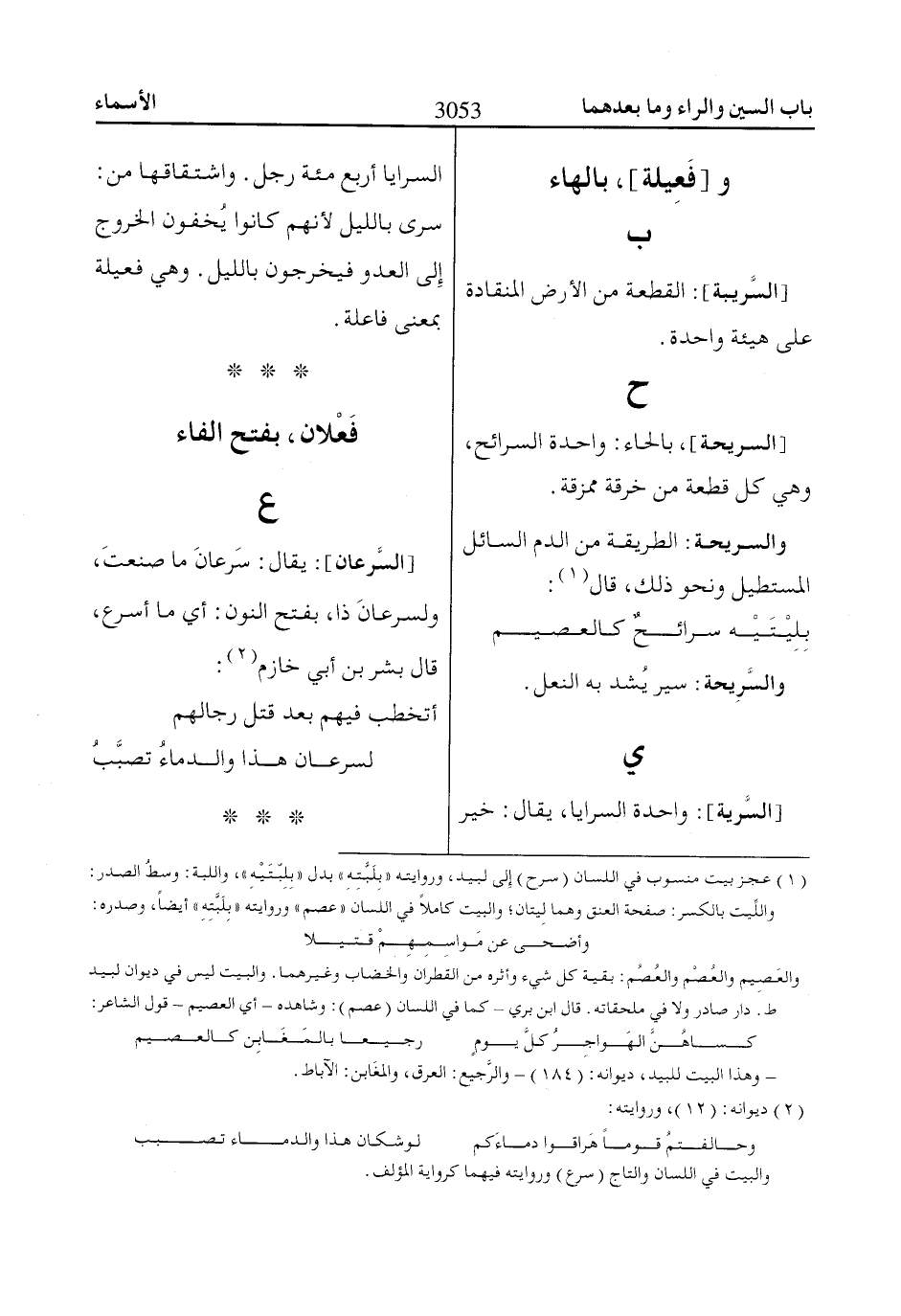 (1) عجز بيت منسوب في اللسان (سرح) إِلى لبيد، وروايته