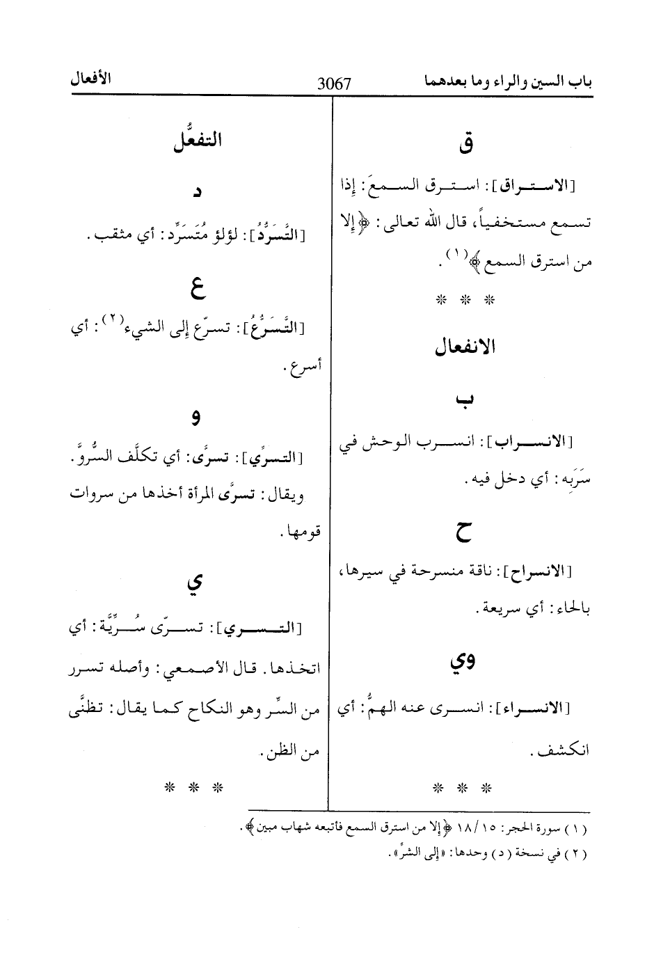 [الانسراء]: انسرى عنه الهمُّ: أي انكشف.