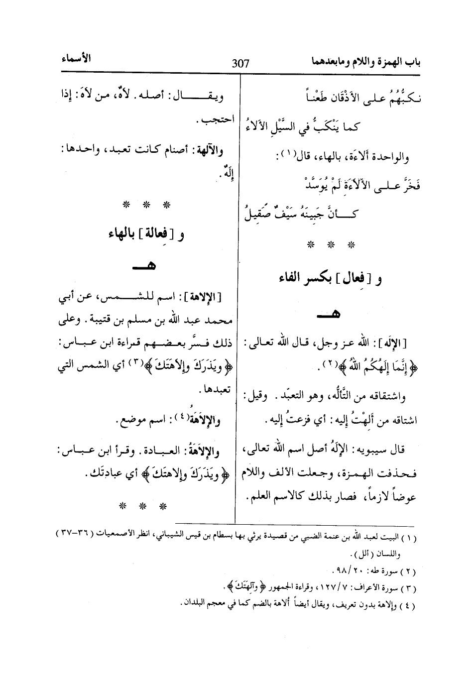 (1) البيت لعبد اللّاه بن عنمة الضبي من قصيدة يرثي بها بسطام بن قيس الشيباني، انظر الأصمعيات (36 - 37) واللسان (ألل).