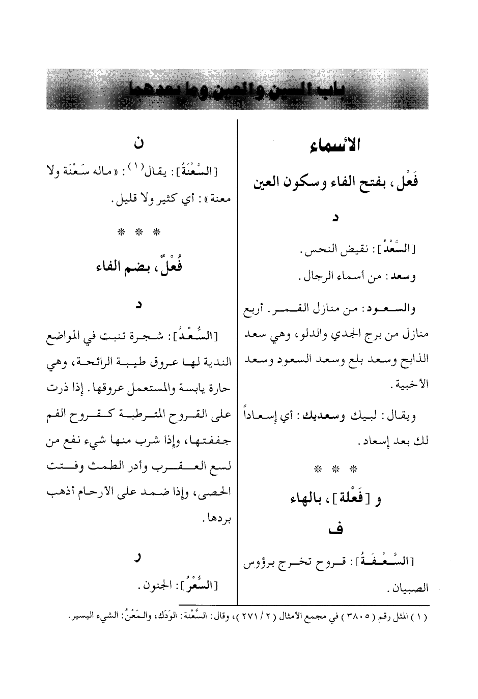(1) المثل رقم (3805) في مجمع الأمثال (2/ 271)، وقال: السَّعْنة: الوَدَك، والمَعْنُ: الشيء اليسير.